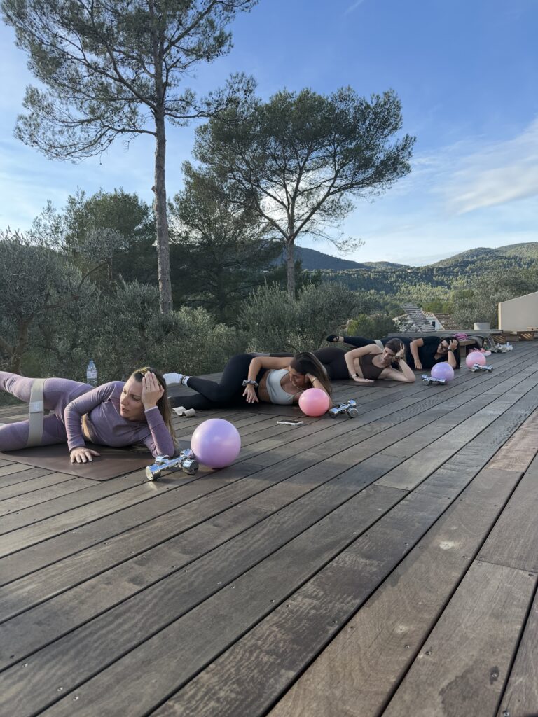 Des séances de Pilates en extérieur, pensées pour optimiser le mouvement, complétées par des temps d’échange, brunch, des ateliers créatifs et des moments collectifs.